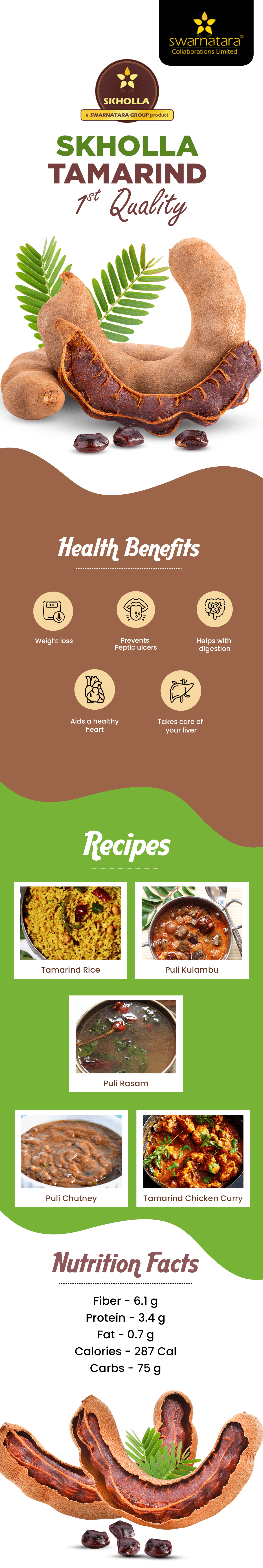 Tamarind 1st Quality 1kg Pack used as spices and sourcing agent in India. It is frequently used cooking ingredients in Indian families. We promise our tamarinds are seedless . We deliver Whiter premium quality Tamarind to your home. If you consume 10g of tamarind per day, it reduces the excess fluoride content in the body.